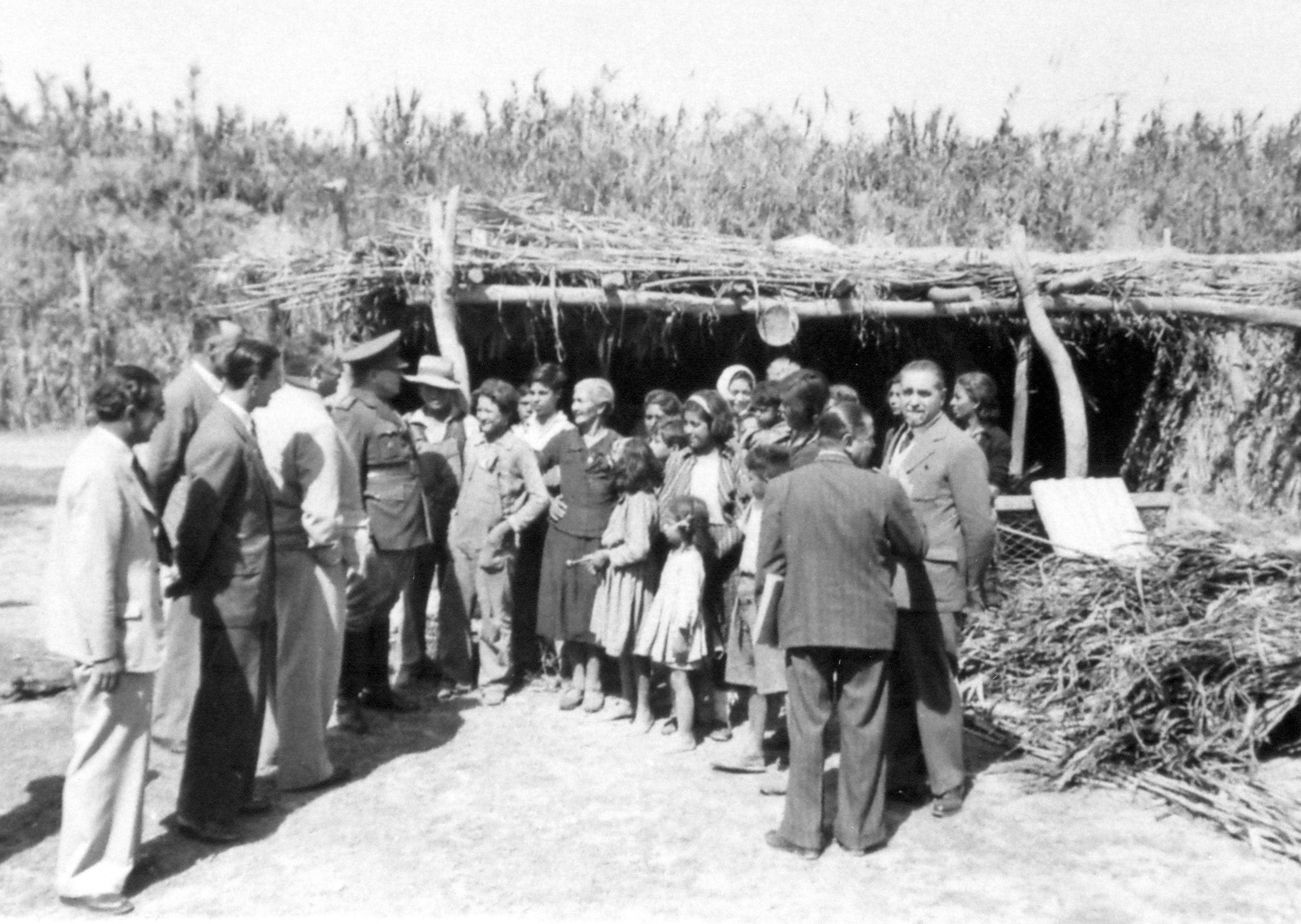 La primera y la segunda tienen una intencionalidad política clara, de mostrar las condiciones lamentables en que vivían muchas familias y la mejora evidente que representaban los barrios de emergencia. Si te fijás, verás que es la misma familia en el centro de las dos: se está retratando su traslado. Sin embargo, como fuentes ambas fotos exceden ese marco. Lo notable de la primera, para mí, no es la precariedad sino la entereza del rancho, otra señal de la capacidad de respuesta popular que la reconstrucción, en general, no supo aprovechar. A diferencia de otros momentos en la historia del peronismo, aquí el saber y la participación popular fueron más bien ignoradas.