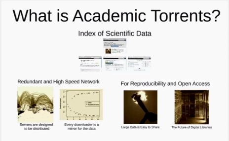 Uno de los más recientes tiene por nombre Academic Torrents, y ya desde su nombre podemos ver el potencial para la polémica, en especial a la luz de los intereses de las revistas académicas como Elsevier o JSTOR, pues la palabra “Torrent” ha estado, desde hace mucho tiempo, ligada a la piratería, además de que es un tipo de tecnología que desde sus inicios y hasta hoy día (y probablemente durante muchos años más) ha sido y será usada para compartir, principalmente, productos culturales con copyright, como lo es la música y productos televisivos (series) y producciones cinematográficas.