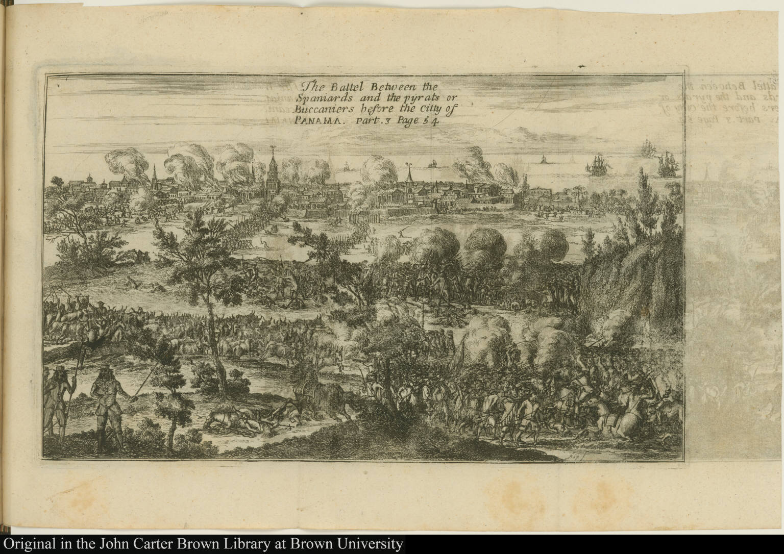Top image: The Battel Between the Spaniards and the pyrats or Buccaniers before the citty of Panama, 1684. Courtesy of the John Carter Brown Library. Licensed under CC BY-SA 4.0. (Find the original here. Image cropped and MB size was adjusted.)