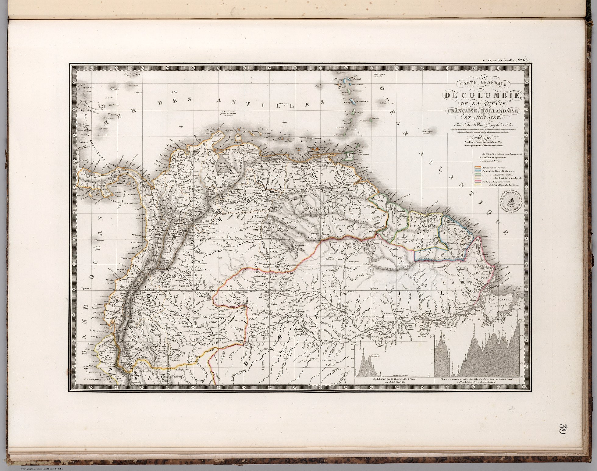 For the purposes of this article, I needed a publication-grade reproduction of an 1823 edition of the Brué map held by the National Library in Colombia. I had built part of my argument out of a close reading of that map, which is titled “Colombie.” As fortune would have it, carrying out the image reproduction process when I was not physically in Colombia became too time consuming to meet the deadline for publication of my article. I therefore had to scour the collections of maps held in other archives and found a copy of Brué’s 1823 map at the American Geographical Society Library’s Digital Map Collections. After taking a closer look at their map, I realized that Brué had printed maps of Colombia in 1823 with alternate titles. Some were titled Colombie, others were titled Colombia. This finding, in part helped along by Sean Mannion’s careful editorial work for HAHR, allowed me to fine-tune my argument about the geopolitical significance of representing Colombian independence and republicanism before French audiences in 1823. As the article argues, the 1823 meaning of a republican Colombia shifted significantly for the French after 1826, as illustrated by Brue’s reedition of the “Colombie” map that took place that year.